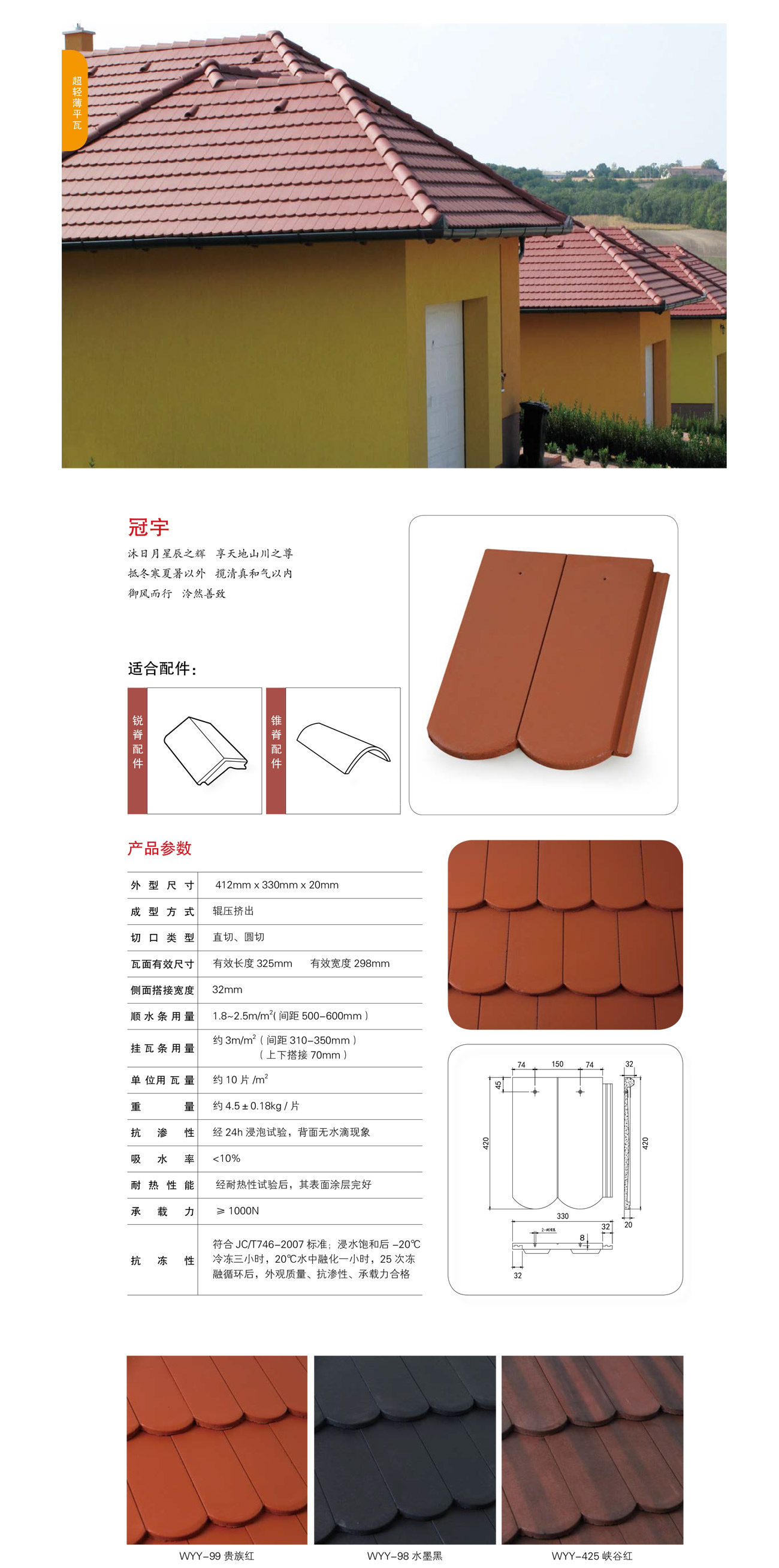 當前位置:網站首頁>>產品介紹>>瓦德彩色混凝土瓦>>冠系列輕薄平瓦